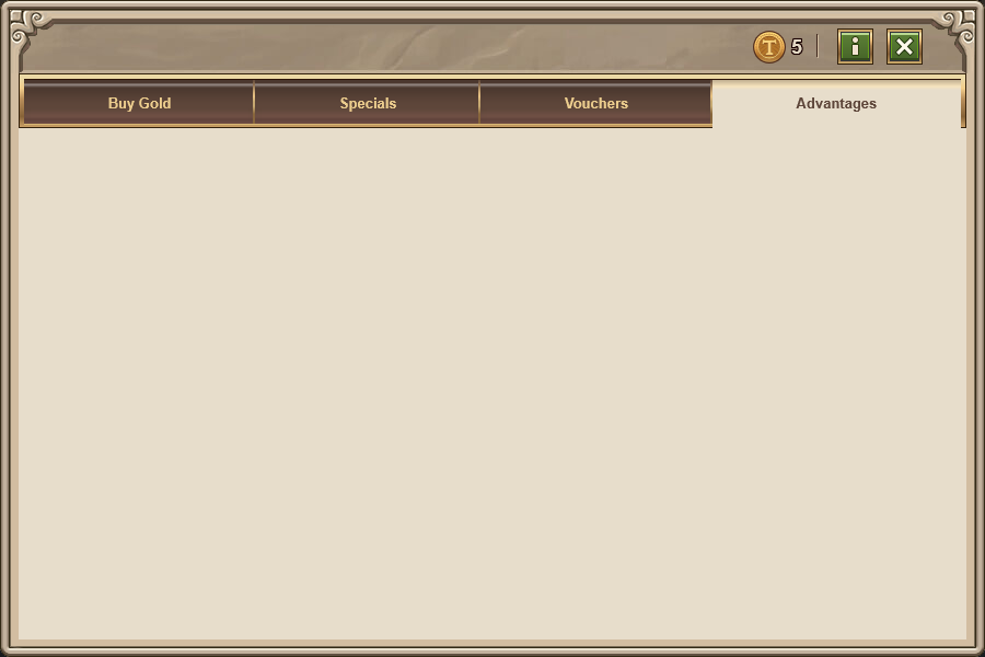 After you finish watching the video to increase resource production, an empty Gold shop window is displayed. This does not prevent the bonus from being applied - it still works and you get the extra resources.