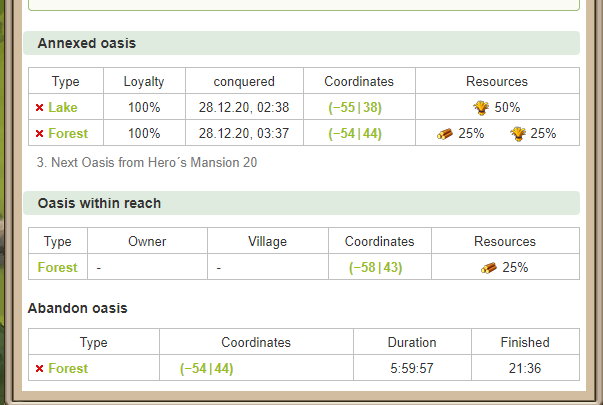 When you conquer an oasis, it grants a production bonus to the village from which your hero conquered it.