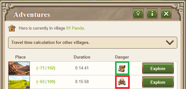 The difficulty of the adventure