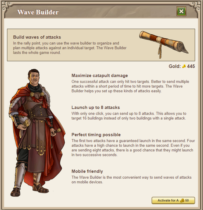 In the Rally Point, the Wave Builder lets you prepare up to 8 attacks against the same target on a single screen. This makes it possible to: